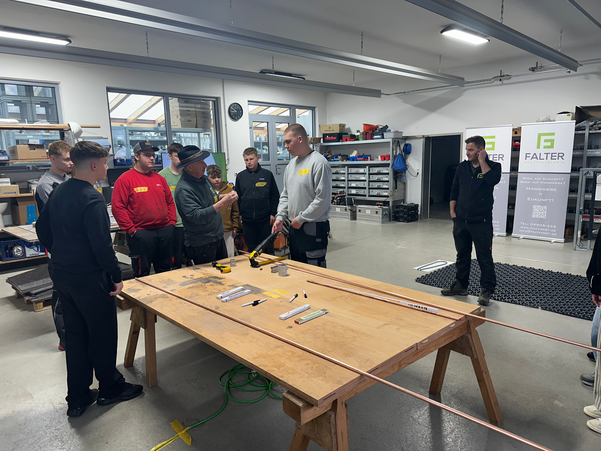 4. Runde von „Ausbildung macht Schule“ an der Mittelschule Metten Bereits zum vierten Mal fand für die Mittelschule Metten das Projekt „Ausbildung macht Schule“ statt. In diesem Schuljahr nahmen 26 Schüler der 8. Jahrgangsstufe teil. Mit den Firmen Gebäudetechnik Falter, PINTER GUSS und Hacker Feinmechanik stellten sich wieder drei wichtige Partner dem von Herbert Altmann, Regionalmanagement Deggendorf, und von Lehrer Martin Sitzberger initiierten Projekt zur Verfügung. „Diese besondere Berufsorientierungsmaßnahme gibt es in dieser Form nur an der Mittelschule Metten. Die Projektpartner tauschen sich regelmäßig mit der Mittelschule Metten aus. Dabei präsentieren die Firmen, zu denen auch die Lebenshilfe Deggendorf, Markmiller und die Berufsfachschule für Pflege des Donau-Isar-Klinikums gehören, an der Mittelschule ihr Unternehmen und ihre Ausbildungsangebote“, erläutert Lehrer Martin Sitzberger das Projekt. Ein besonderes Highlight stellte für die Schüler der sogenannte Praxistag am 22.05.25 dar, an dem sie Heft, Stift und Tablet gegen Schraubenzieher und andere Arbeitsmittel tauschten und für einen Tag Azubi „spielen“ konnten. Dabei durften die Schüler anhand der im Vorfeld gewonnenen Informationen ganz nach eigenem Interesse entscheiden, in welchem Partnerbetrieb sie sich einer originalen Aufgabe aus der Ausbildungspraxis stellen möchten. Im Sinne des praktischen Lernens legten die Schüler in der gewählten Partnerfirma selbst tatkräftig Hand an. Bei Gebäudetechnik Falter stellten sie einen Beistellhocker her, für den sie Kupferrohre schnitten, bogen und verpressten. Das Vorbereiten der Formen für einen Abguss eines Skateboards war die Aufgabe bei der Pinter Gruppe. Auch der sogenannte „Hackerwürfel“, ein Briefbeschwerer aus Metall, war ein originales Werkstück für angehende Industriemechaniker bei Hacker Feinmechanik, das die Schüler mit Feile und Bohrer selbst herstellten. Ganz nebenbei erkannten sie, wie wichtig so manche Mathe-Kenntnisse aus der Schule sind. Vor allem, wenn es um das Volumen oder die Oberflächengröße ihrer Bau- bzw. Gussteile ging. Ausnahmslos angetan zeigten sich die „Azubis für einen Tag“ und berichteten am nächsten Schultag mit großer Begeisterung von ihren praktischen Erfahrungen und Erlebnissen in ihren Partnerbetrieben. Neben der praktischen Auseinandersetzung mit einer Übungsaufgabe aus der Ausbildung freuten sich die Jugendlichen sehr über die körperliche Stärkung, an der es bei den Betrieben in Form von Brotzeit nicht fehlte. „Ein herzlicher Dank gilt allen Partnerbetrieben, durch deren großes Engagement und Bemühen dieser Projekttag überaus gelungen war und somit ein wertvoller Beitrag zur Berufsorientierung geleistet werden konnte“, bedankte sich Sitzberger und zog sehr positiv Bilanz. Fotos (MS Metten):